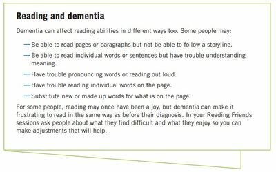 This information sheet talk about dementia and how to make Reading Friends sessions dementia friendly. It is for those leading…