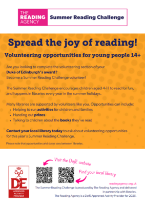 Are there volunteering opportunities available at your library this summer to support the Summer Reading Challenge? Use this eye-catching poster…