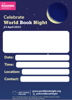 Add details of your World Book Night activity to this poster for promotion.